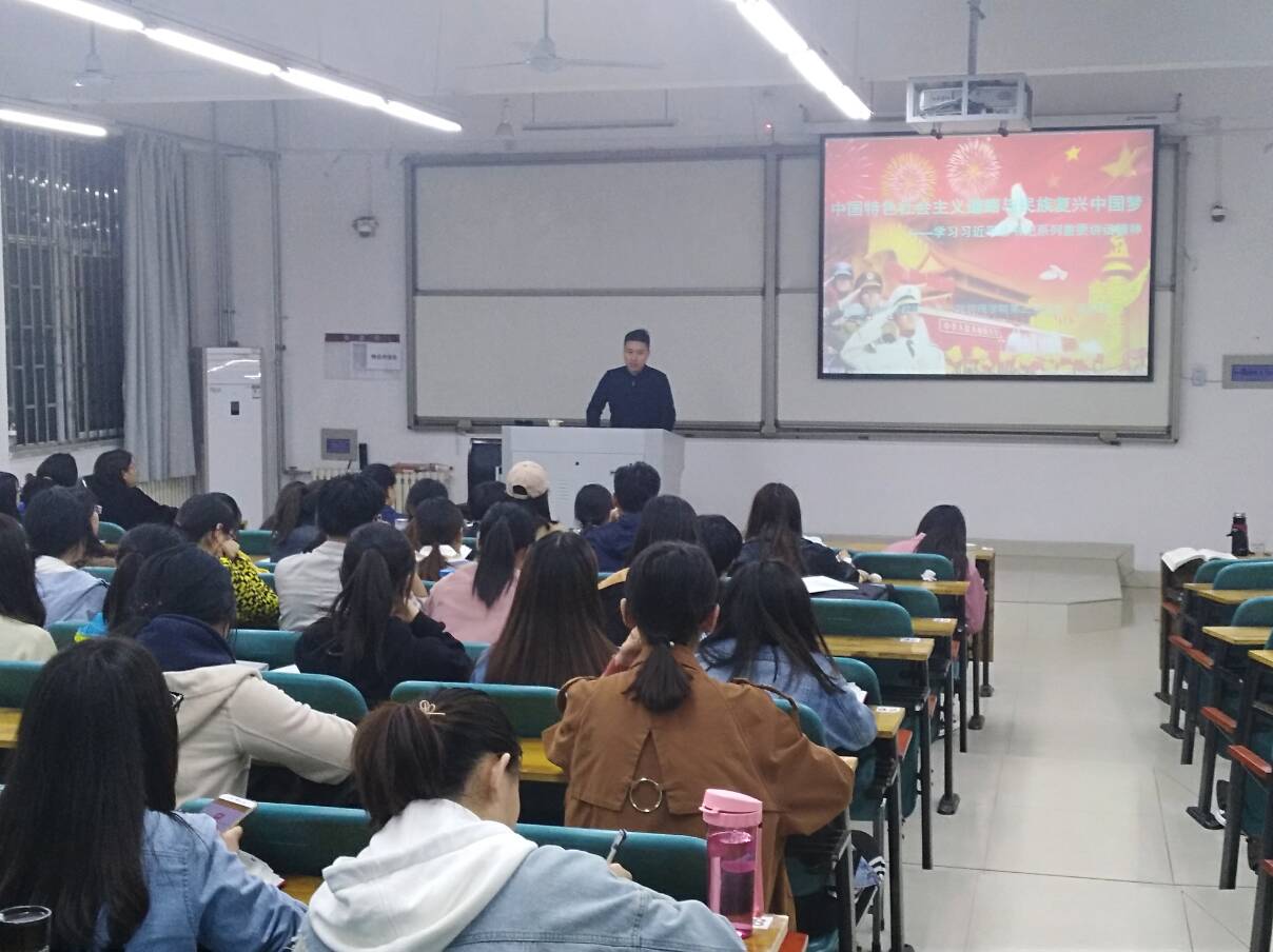 2018年4月12日,公共管理学院党委书记袁凯成老师主持召开了题为学习习近平新时代中国特色社会主义思想与自我思考的党课培训,袁书记凭借着自己过硬的理论知识和与时俱进的学习能力为大家深入浅出地讲解了习近平新时代中国特色社会主义思想的科学内涵和现实意义,袁书记结合自己的生活与学习经历,语重心长地为大家讲授了作为新时代党员应当具备的自我思考能力,对于国家和社会发展的掌握要结合历史,结合现在,放眼未来,号召大家学做有理想、不怕苦的新时代大学生,在今后要以党员标准严格要求自己,把党作为自己终身的信仰。