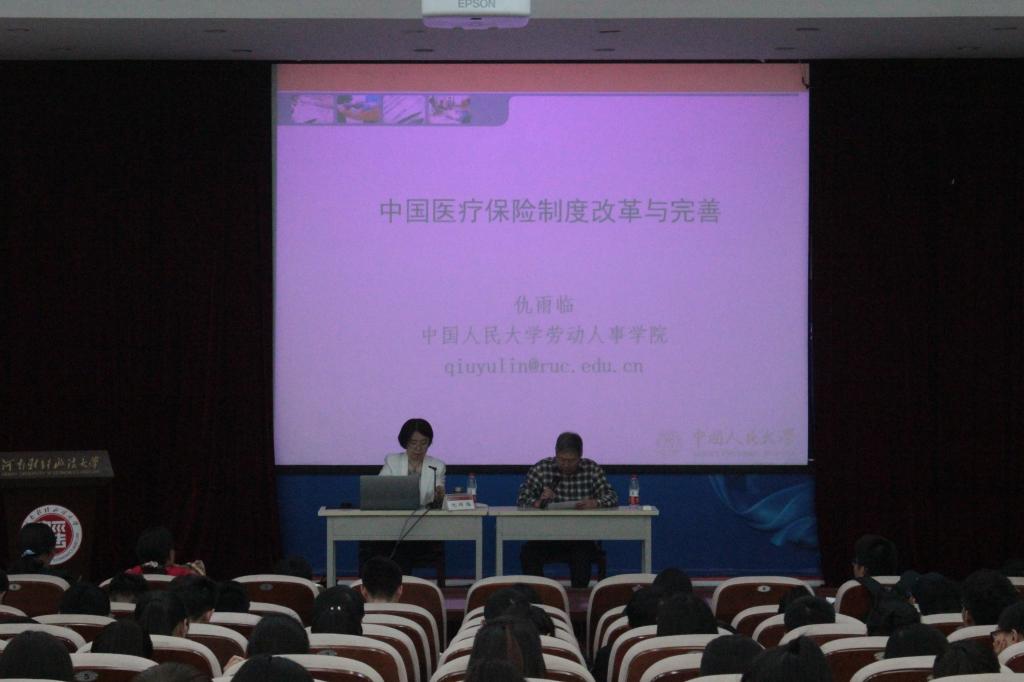 为增进同学们对中国医疗保险制度改革的了解,2018年5月21日,公共管理学院举办专题报告会。报告在郑东新区校区第一教学楼220教室进行,特邀中国人民大学中国社会保障研究中心副主任仇雨临教授为主讲嘉宾。公共管理学院叶建新副院长、部分教师和学生参加报告会。