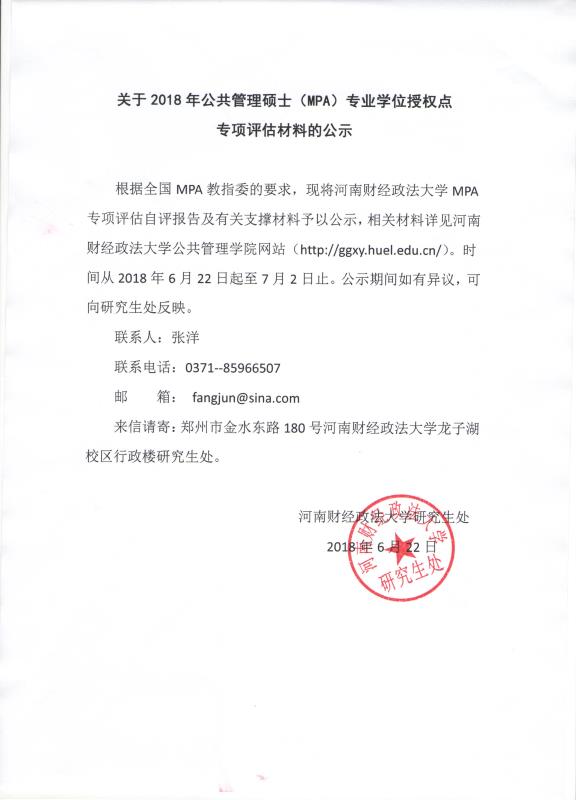 2018年公共管理硕士(MBA)专业学位授权点专项评估材料公示