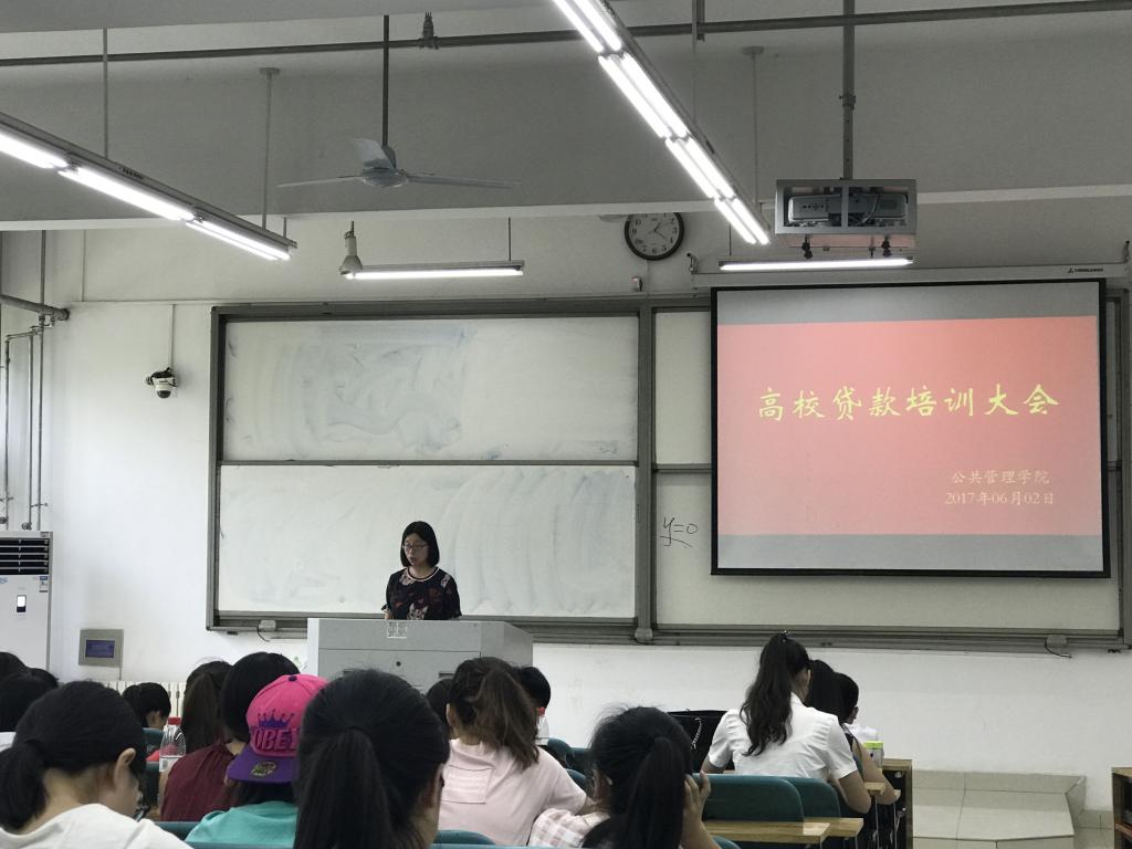 在2017年度贷款工作即将开展之际,为了帮助贷款学生了解今年高校贷款政策的变化,同时也为不了解贷款流程的同学提供相关咨询,深入贯彻落实“高校贷款惠民利民,助莘莘学子圆梦校园”的国家政策,公共管理学院于2017年6月2日在教科106召开了贷款培训大会。本次会议由我院资助管理中心主任敬中路主持,辅导员卫艳涛老师出席指导,本次会议由各班生活委员,班长以及有意进行高校贷款的同学到场参加。