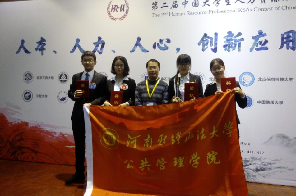 11月26日, 第二届中国大学生人力资源职业技能大赛于在中国劳动关系学院圆满落下帷幕。由公共管理学院组建的河南财经政法大学代表队在此次大赛中取得了团体二等奖的优异成绩。