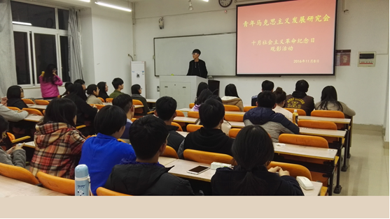 2016年11月7日,社会主义核心价值观微讲堂在教一409举行独具特色的观影活动。此次观影活动旨在纪念俄国十月社会主义革命成功,学习马克思主义中国化的成果,校社团联合会全程参与。